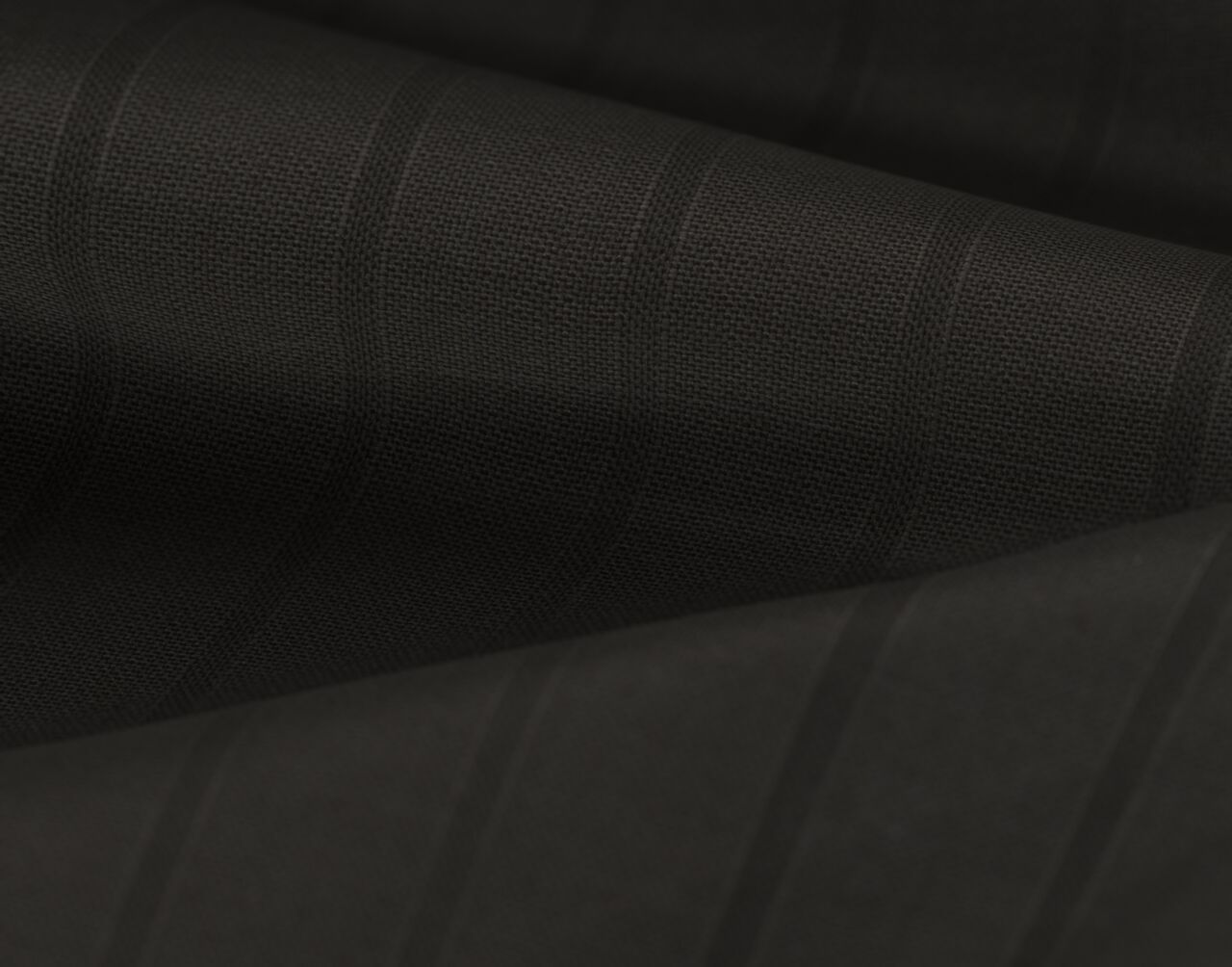 【春夏生地】トロピカル生地に撚り方向が異なる糸を入れて、順逆ストライプ柄を表現しています。撚り方向が異なる糸の堺にコード糸を入れることで、ストライプの輪郭となりシャープな見た目が特徴です。