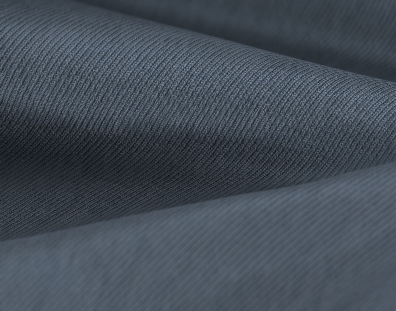 【秋冬生地】染色加工メーカー小松マテーレの天日干し風の「SY加工」生地です。通常のプレーン無地タイプと違いナチュラルなシワ加工が入ることにより、セットアップ、オフィスカジュアルに適した雰囲気を表現しています。※生地の色はブルーグレーです。