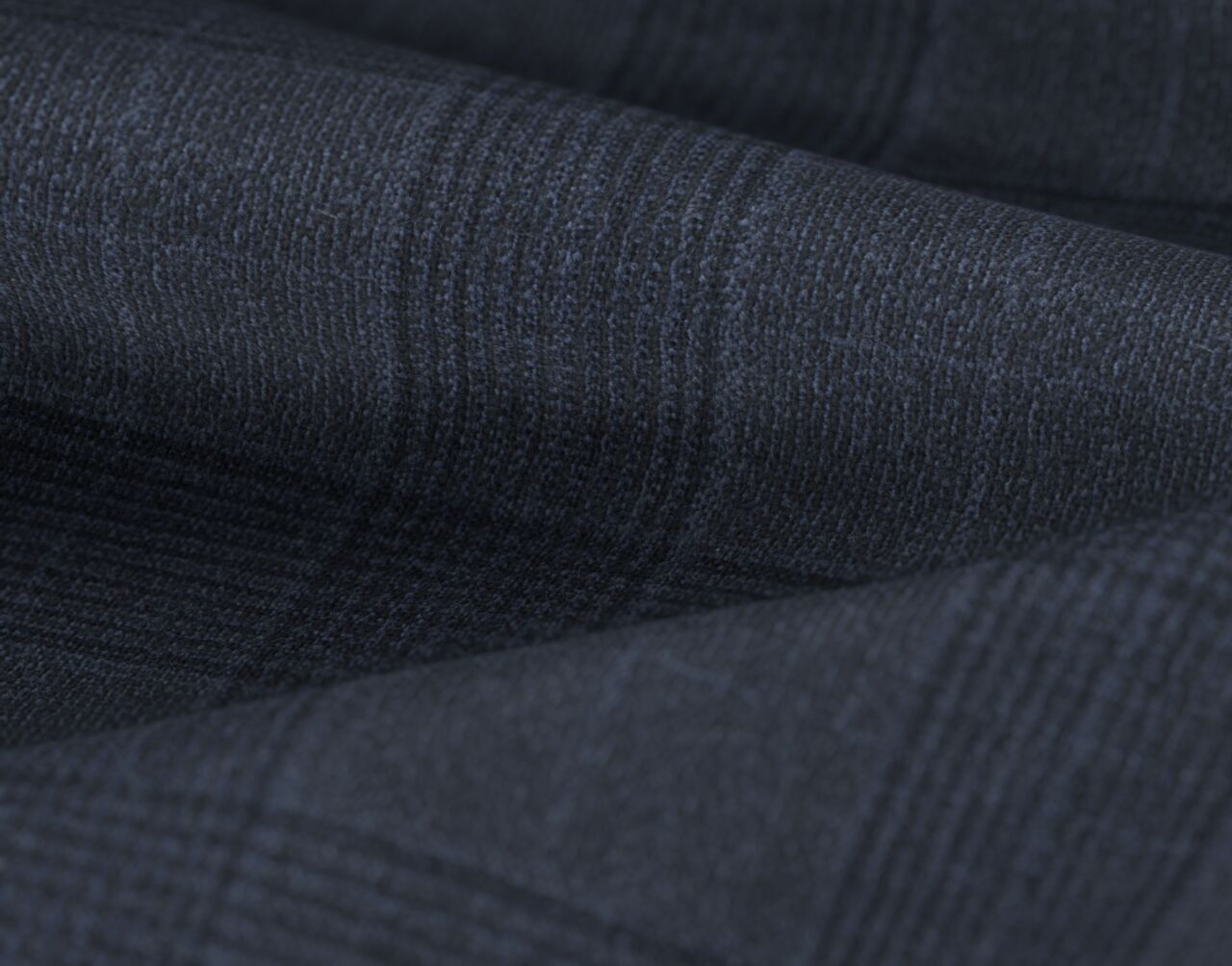 【通年生地】Tollegnoの3D Woolとは 「DYNAMIC」「DAILY」「DIFFERENT」の3つのDの頭文字で、<ダイナミックに動いて><毎日着て>そして<違い>を追求した素材です。タテ糸には通常のウール糸を用い、ヨコ糸のウール糸へ僅かなポリウレタンをブレンドすることで、伸縮性や復元性が強化され、名称通り3次元の動きに対応できます。