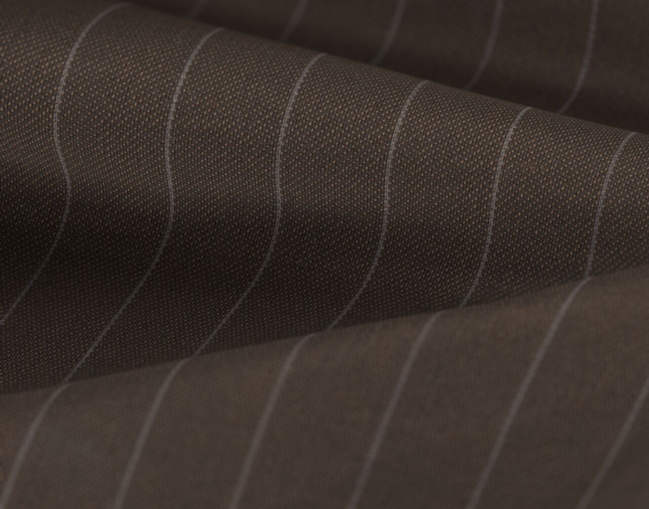 【通年生地】Marzottoが提案するビジネスシーンに向けた、着心地とスタイリッシュを同居させたブラウンストライプです。一味違ったブラウンのグラウンドに主張し過ぎないシンプルなストライプは、しなやかな風合いと上品な光沢を兼ね備えた素材に仕上がっております。