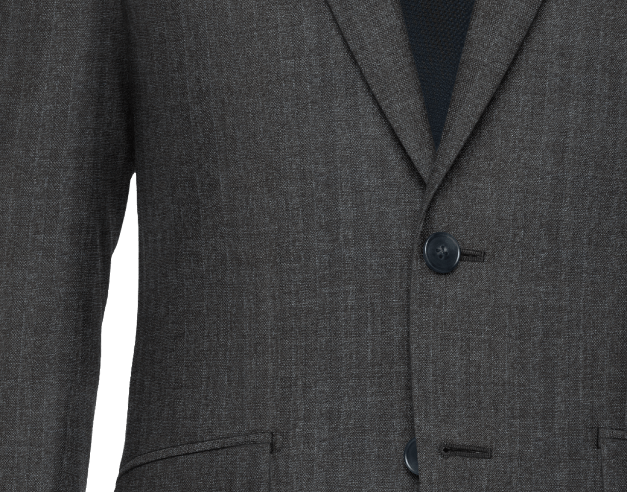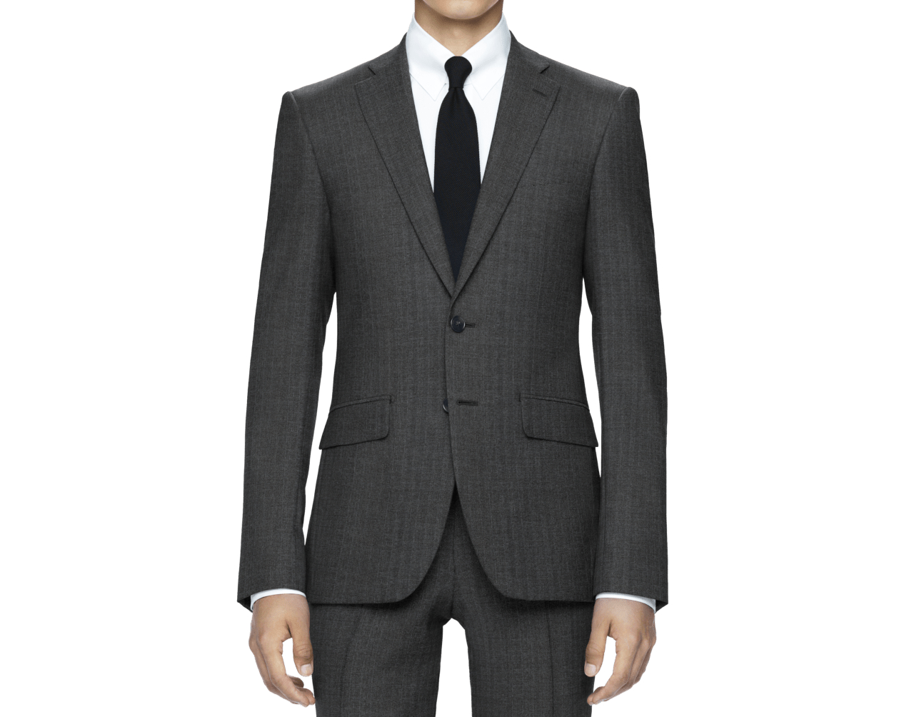 【秋冬生地】2/2綾組織のヘリンボン柄です。黒色のベースにグレーと黒の杢糸を入れることで色合いを出しています。