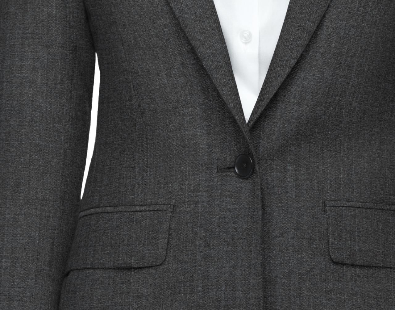 【秋冬生地】2/2綾組織のヘリンボン柄です。黒色のベースにグレーと黒の杢糸を入れることで色合いを出しています。