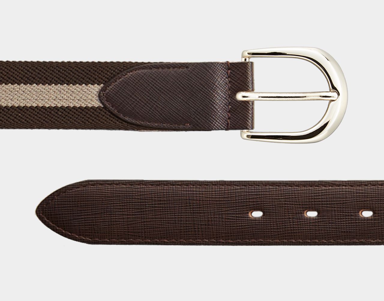 【リバーシブル】ストレッチ機能のあるストライプテープは、裏面が無地として使用できる、リバーシブルタイプ。一本でON/OFFの使い分けが可能なベルトです。
