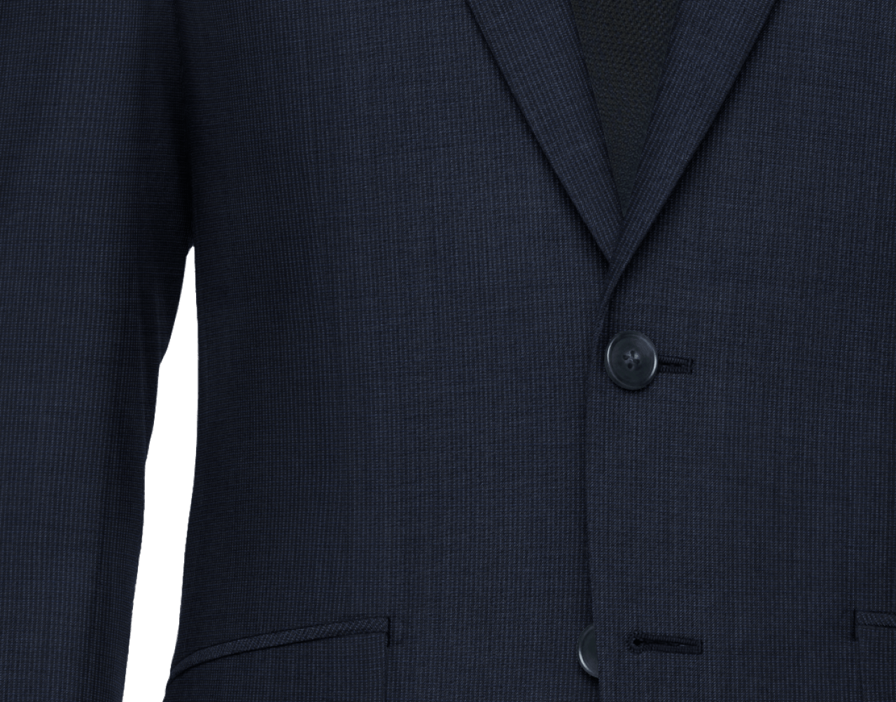 【春夏生地】メリノウールにポリエステルを混紡した丈夫でしわになりにくい素材です。※着用感の軽い専用仕様となります。生地の柄はマイクロストライプ調です。
