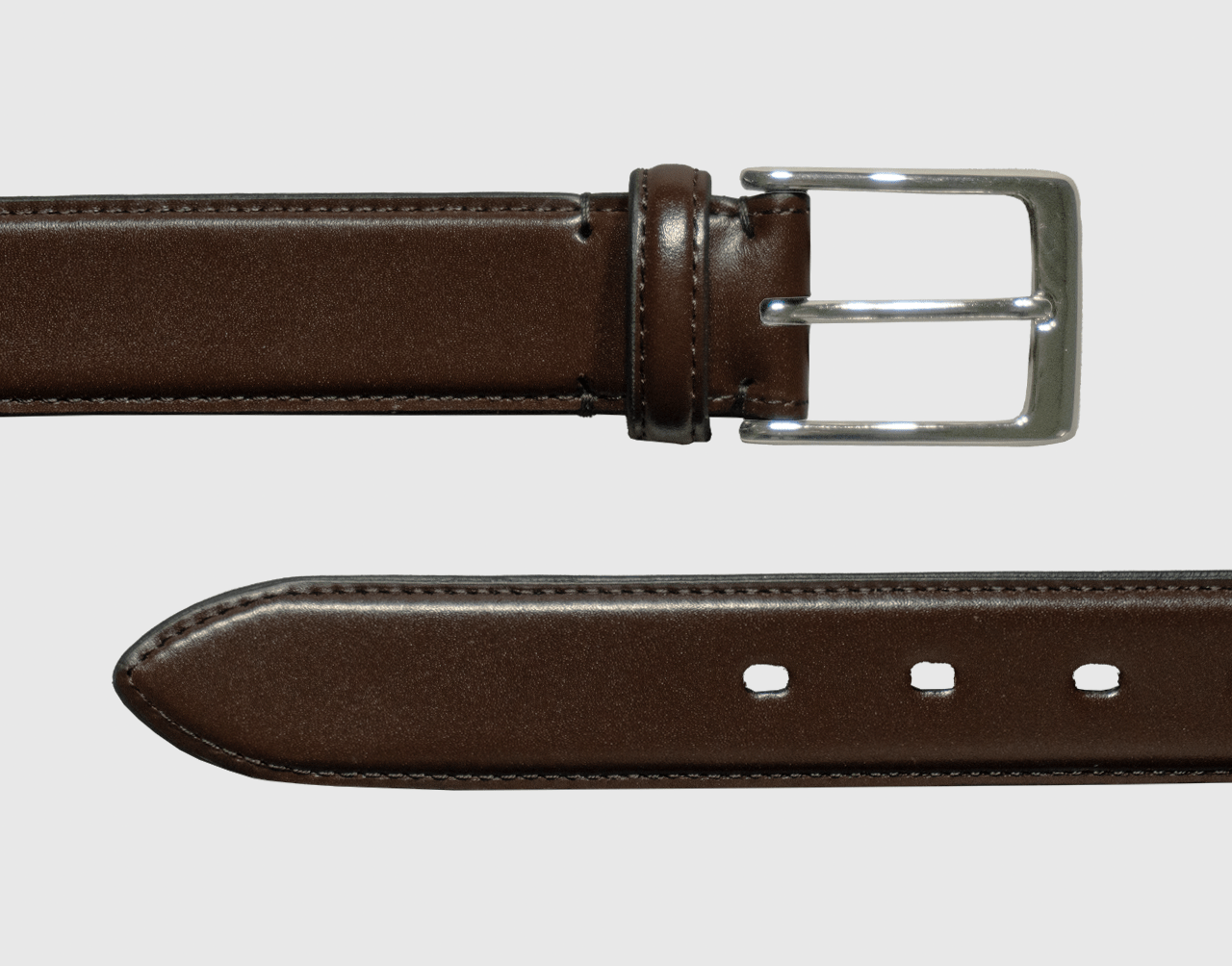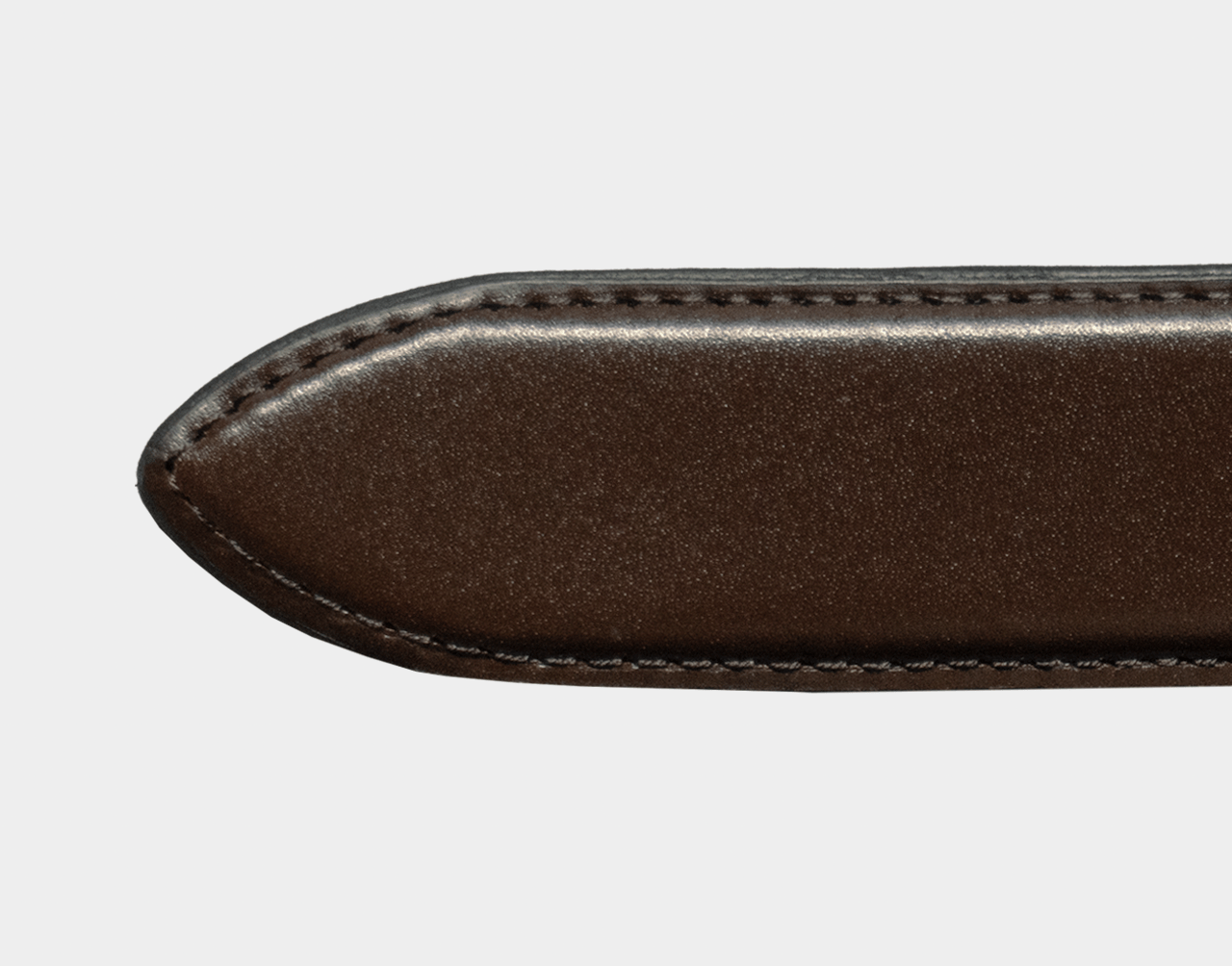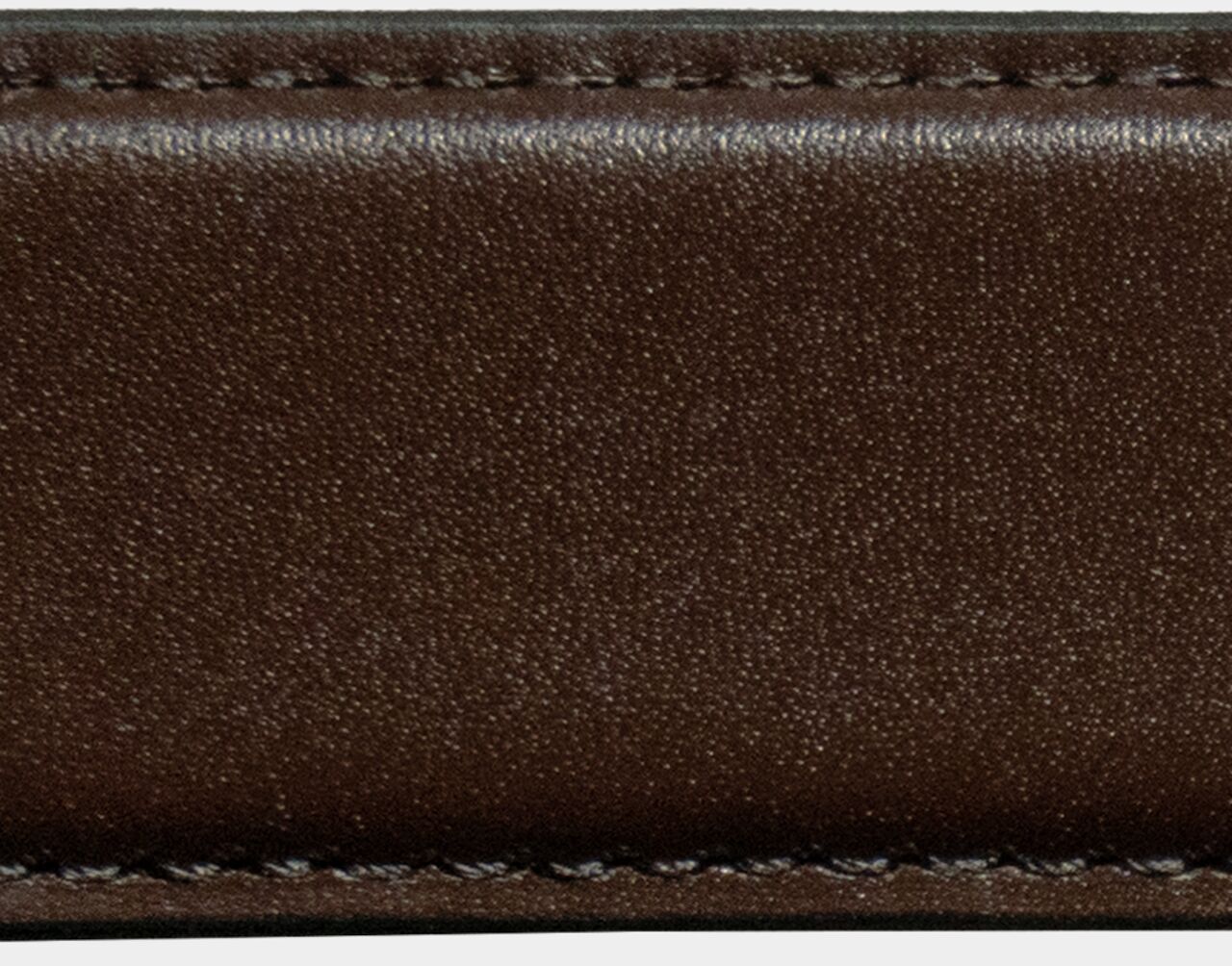 このツヤ感はクロム鞣しの特徴。クロム鞣しとは、塩素性硫酸クロム鞣剤で鞣す事をいい、経年劣化が少なく、柔らかく柔軟性があり、耐久性にも優れた素材。透明感のある仕上がりがベルトを演出。
