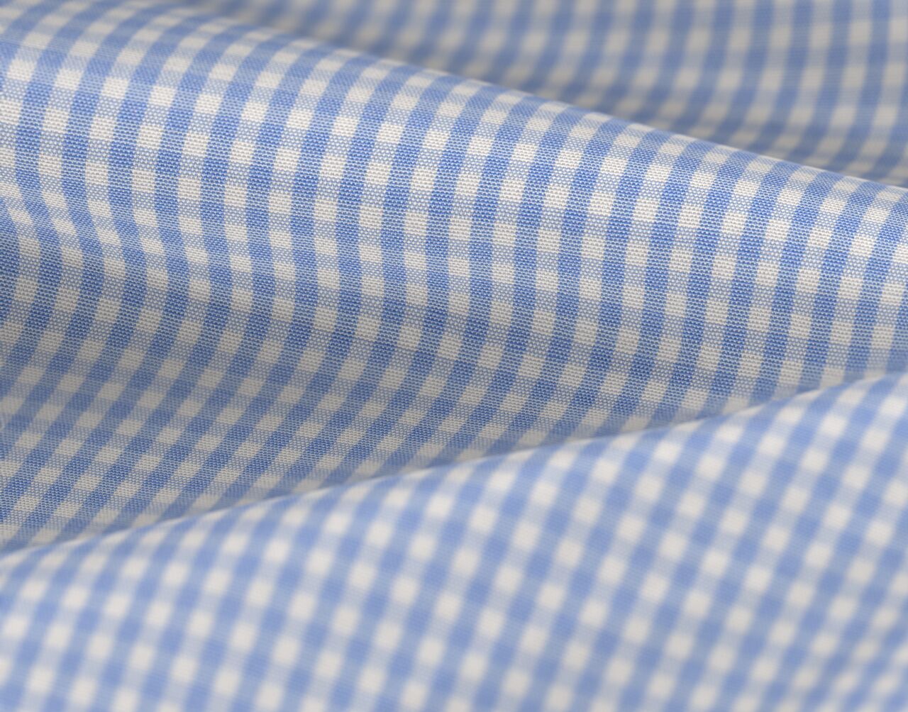 細番手双糸を使用した先染めカラー企画です。スーツスタイルに合わせやすい無地、ストライプ、ギンガムチェックのバリエーションは、ビジネスシーンに最適です。