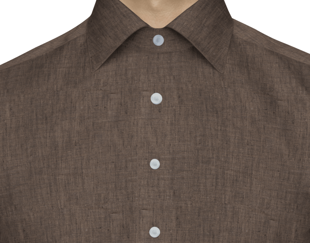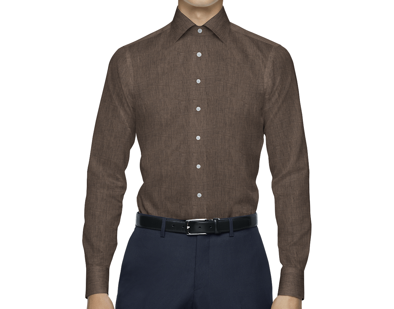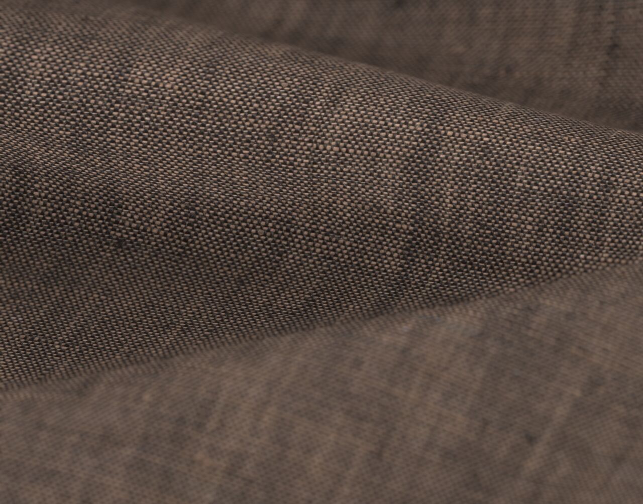 【春夏生地】麻の生地は、空気をよく通し余分な湿気をすばやく逃がして常に肌離れがよく快適です。さらりとした質感に、自然なハリと控えめな光沢が上品さを添え、着るほどに柔らかく育つ風合いも魅力です。ダークトーンなら秋冬の装いにも馴染みます。ニットやジャケット、ベストとのレイヤードにも好相性で、春夏生地ですが通年でも活躍する一枚です。
