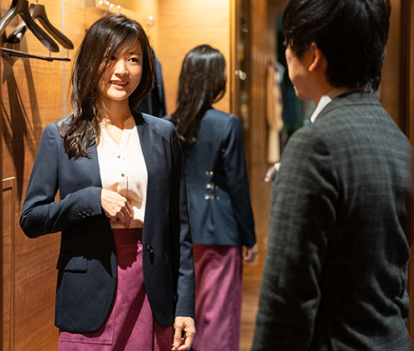 ご予約いただくことで、お客様のご来店に合わせてテイラーとのコーディネートについてじっくりとご相談いただけます。 待ち時間なく、より質の高いパーソナルなサービスをご提供いたします。