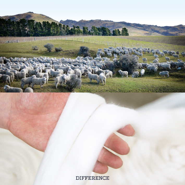 DIFFERENCEではニュージーランド政府の協力のもと、独自の原毛調達ルートを構築し、サステナブルで高品質なオリジナル生地「LIMITED WOOL」を開発・販売しております。