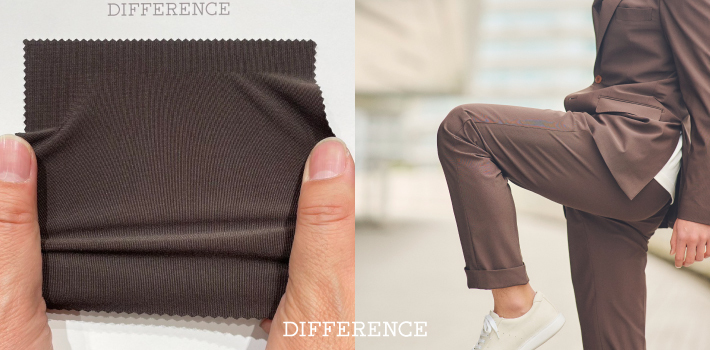 機能性だけでなく、素材の質にもこだわりました。特に、ストレッチ性にかなり優れた生地も豊富にご用意しています。長時間のデスクワークや移動が多いビジネスパーソンでも、ストレスなく快適に過ごせることでしょう。