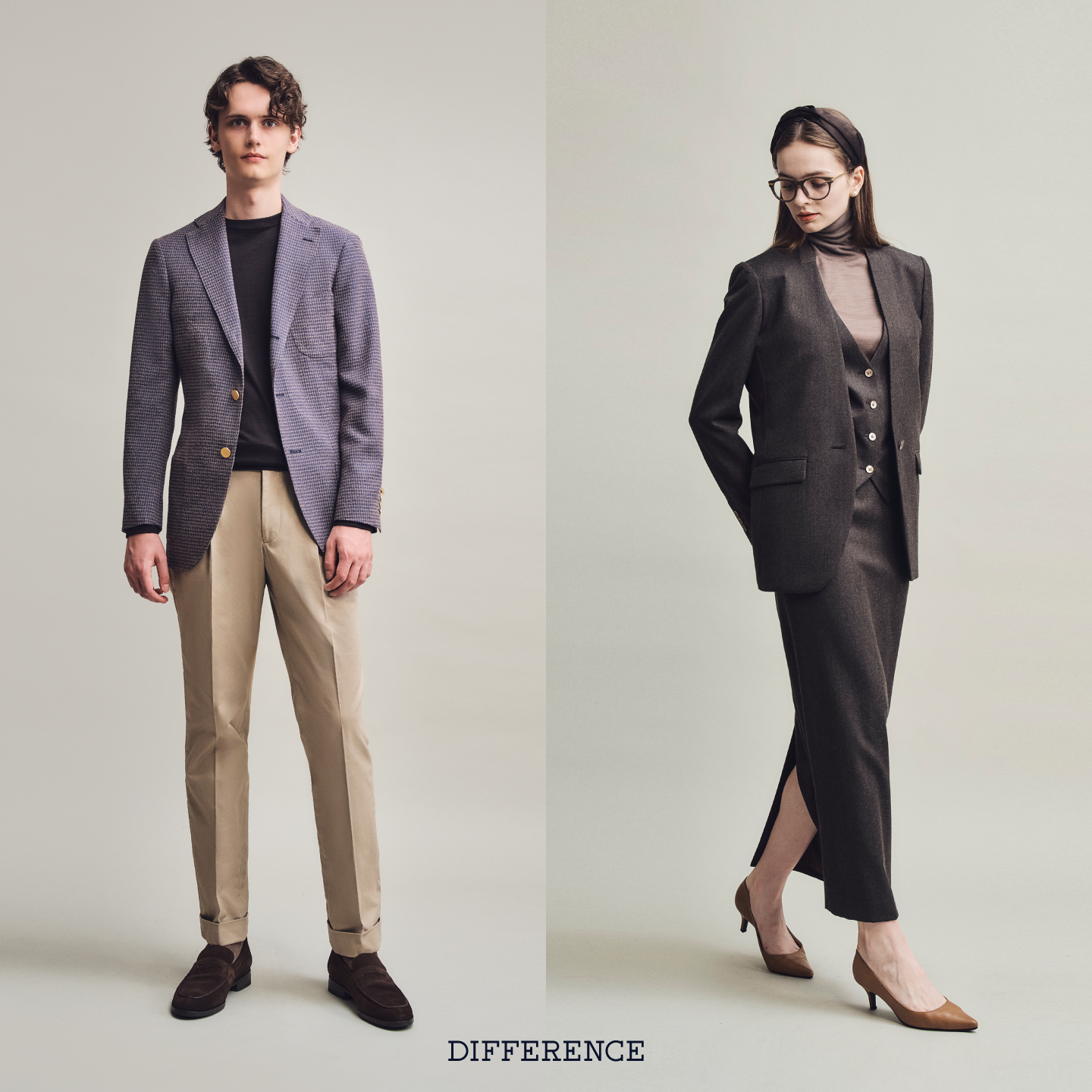 ビジネスカジュアルの正解は、DIFFERENCEで。 熟練のテイラーと共に、あなたの「理想」を具現化する時間をぜひご体感ください。