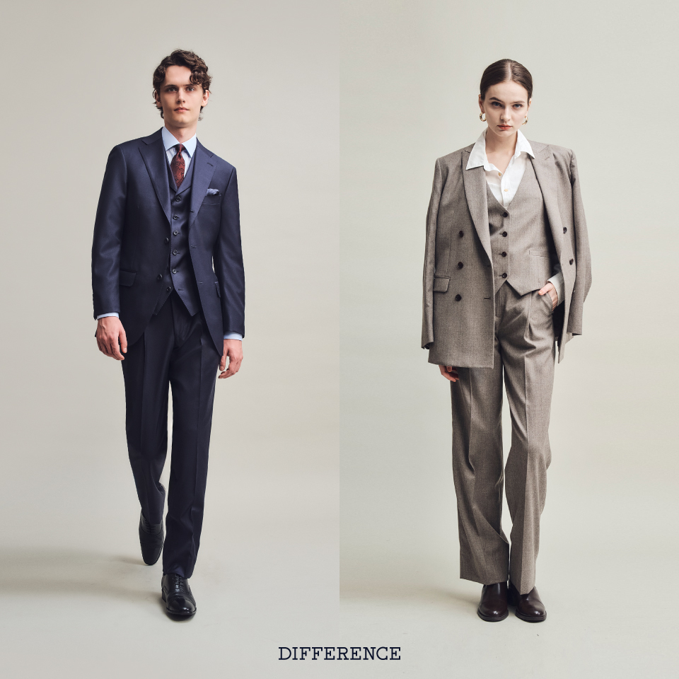 DIFFERENCEのオーダーベストは、ワードローブに風格を加え、着こなしを格段にレベルアップさせます。熟練のテイラーが、お客様のスタイルに合わせた最適なベストをご提案いたします。
