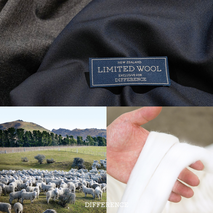 DIFFERENCEではニュージーランド政府の協力のもと独自の原毛調達ルートを構築し、サステナブルで高品質なオリジナル生地「LIMITED WOOL」を開発・販売しています。