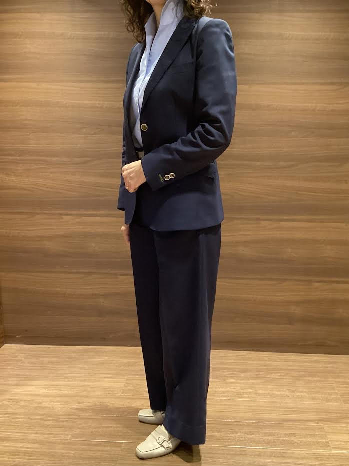 ボタン変更でアクセントと袖ボタンホールの色を変えてポイントを入れました。